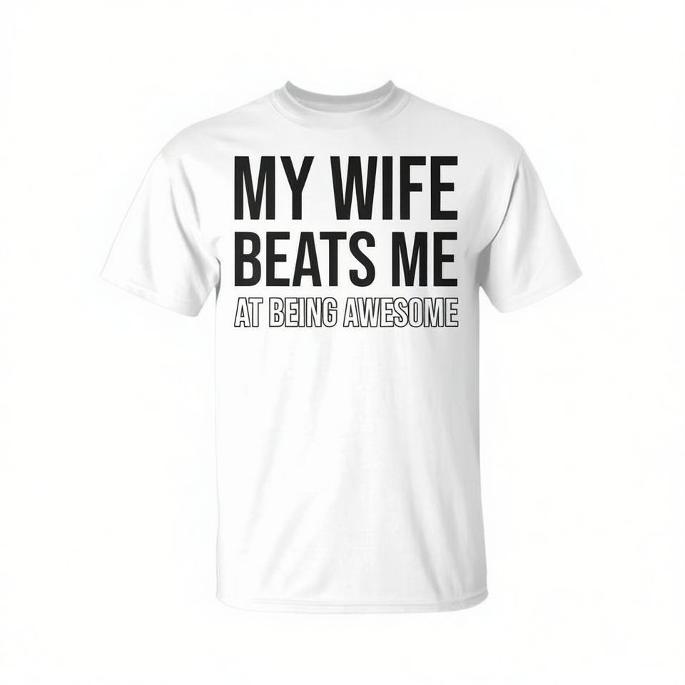 ภรรยาของฉันเอาชนะฉันในเรื่องการเป็นคนสุดยอด เสื้อยืดตลกๆ สำหรับคู่รัก เสื้อตลกๆ เกี่ยวกับการแต่งงาน
