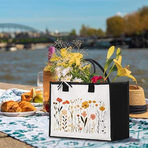 Myorganicbag กระเป๋าผ้าใบทำมือมีกระเป๋าด้านในและสามสายตกแต่งสวนดอกไม้ตัวอักษรเปิดปิดกระเป๋าถือ