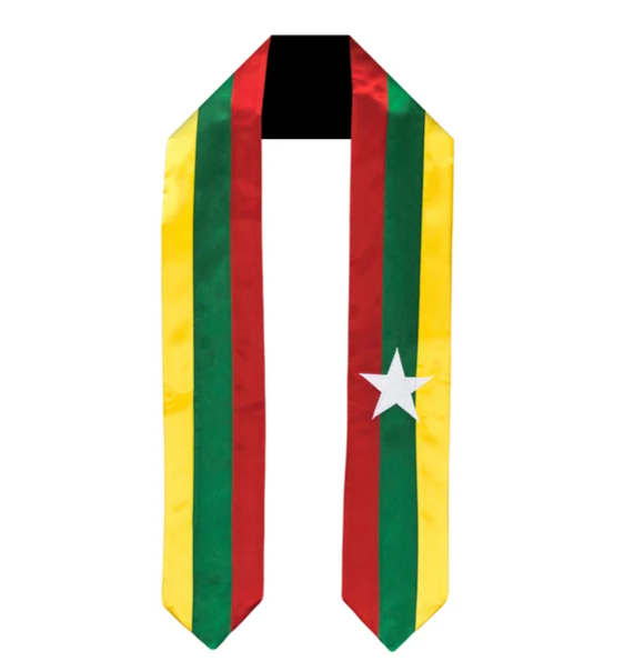 สายคาดสำหรับจบการศึกษาลายธงพม่าผ้าซาตินแบบเรียบผ้าซาตินแบบ Guam