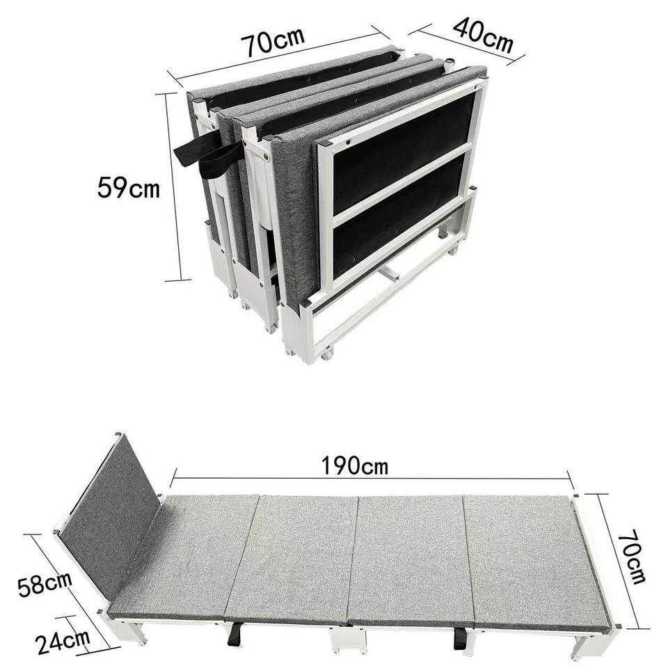 เตียงพับ Myb พร้อมพนักพิง ขนาด 190x70 ซม. โครงอะลูมิเนียม สีเทา เตียงพับแบบมอร์ฟี สำหรับใช้ในสำนักงาน โรงเรียน ดีไซน์ทันสมัย