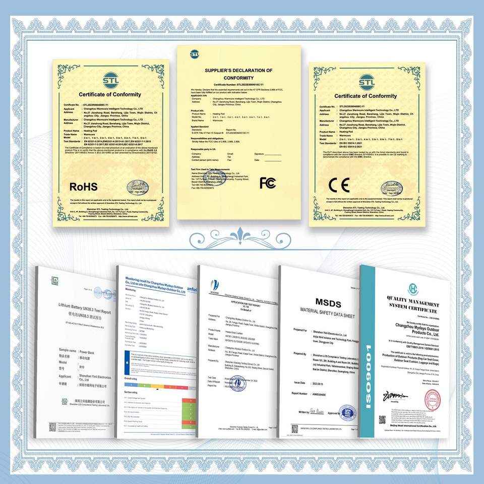 Mydays เบาะรองนั่งแบบมีช่องเสียบ USB 5V ของธนาคารปรับอุณหภูมิได้เบาะรองนั่งให้ความอบอุ่นในฤดูหนาวมีพนักพิงปรับได้