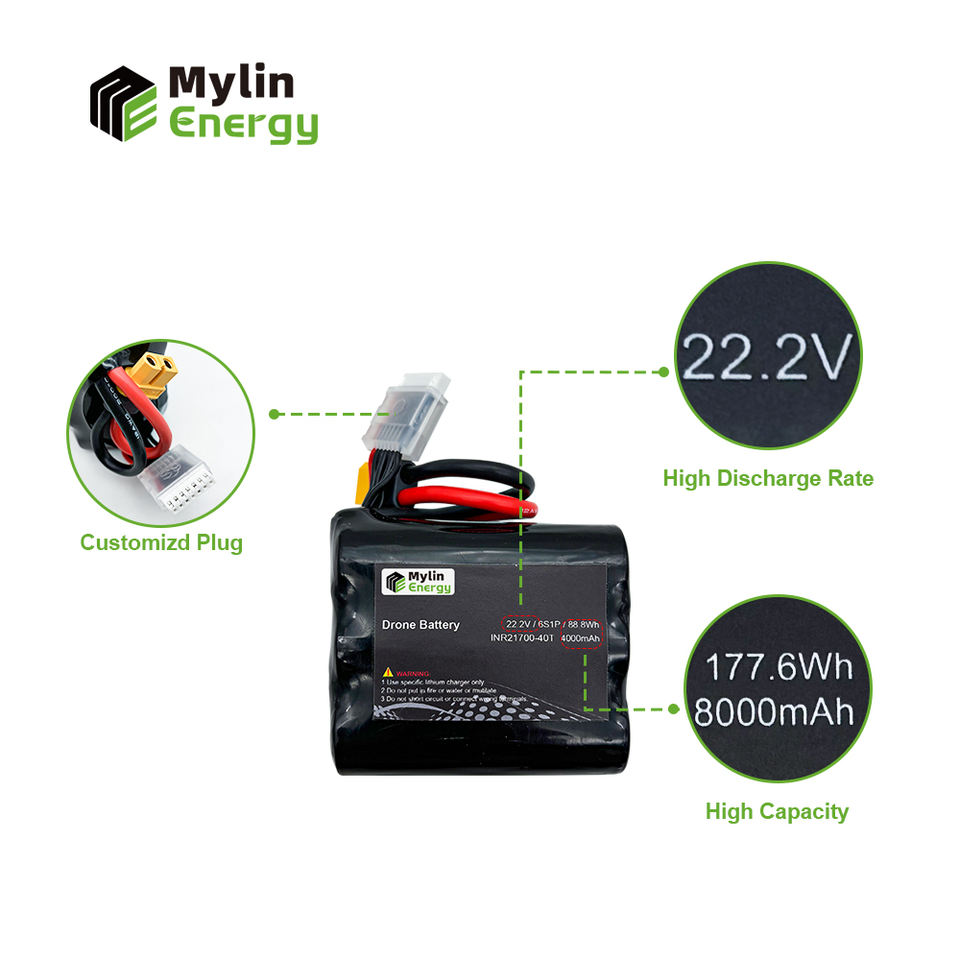 ชื่อผลิตภัณฑ์:แบตเตอรี่ลิเธียมไอออน22.2V สำหรับโดรน4000mAh 6S1P