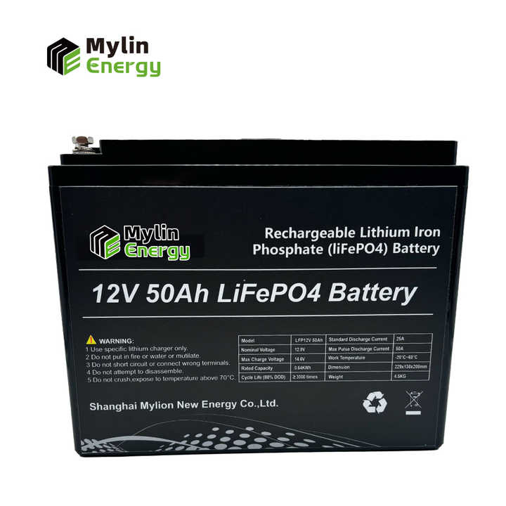 Mylin Energy Grade A 12V 50Ah Deep Cycle LiFePO4 Battery for Residential Solar Storage Hybrid Inverters and Backup Power Supply