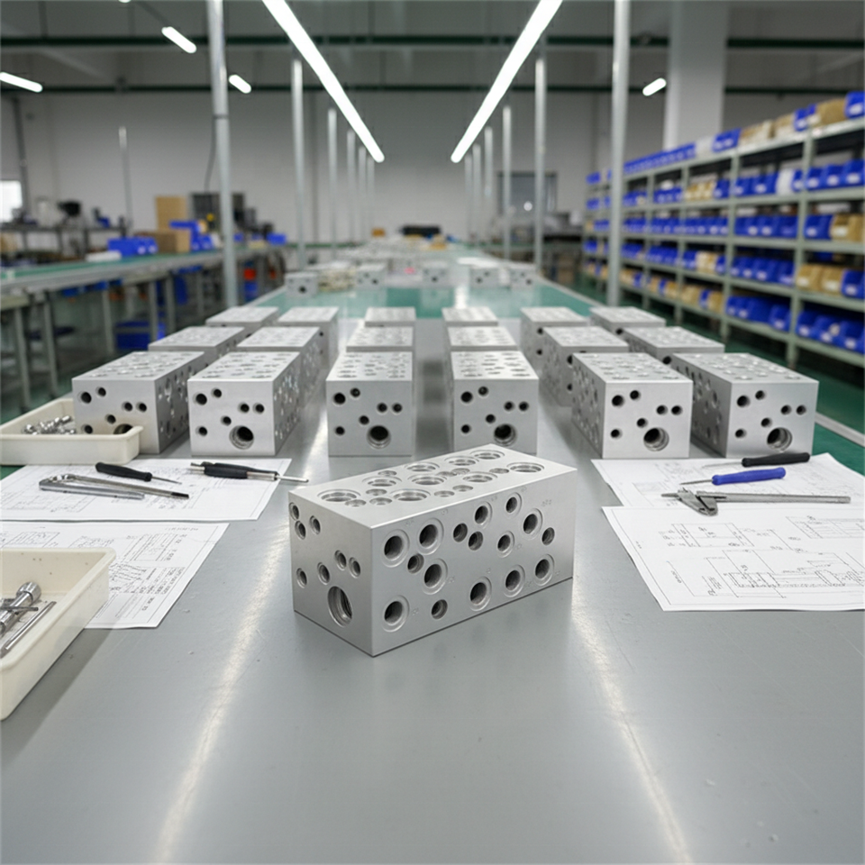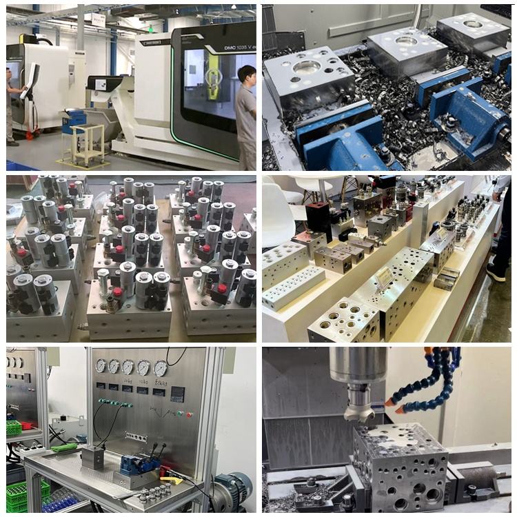 วาล์วไฮดรอลิกแบบตลับโลหะหล่อขึ้นรูปตามสั่งของ Myroth บล็อกวาล์วไฮดรอลิกแบบแมนิโฟลด์ทำจากอลูมิเนียมอัลลอยด์สำหรับเครื่องจักรอุตสาหกรรม