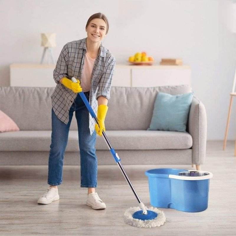 ไม้ถูพื้นมีร์วา 360 องศา พร้อมถัง ด้ามสแตนเลส หัวกลม ทำความสะอาดพื้น ดีไซน์ทันสมัย พกพาสะดวก