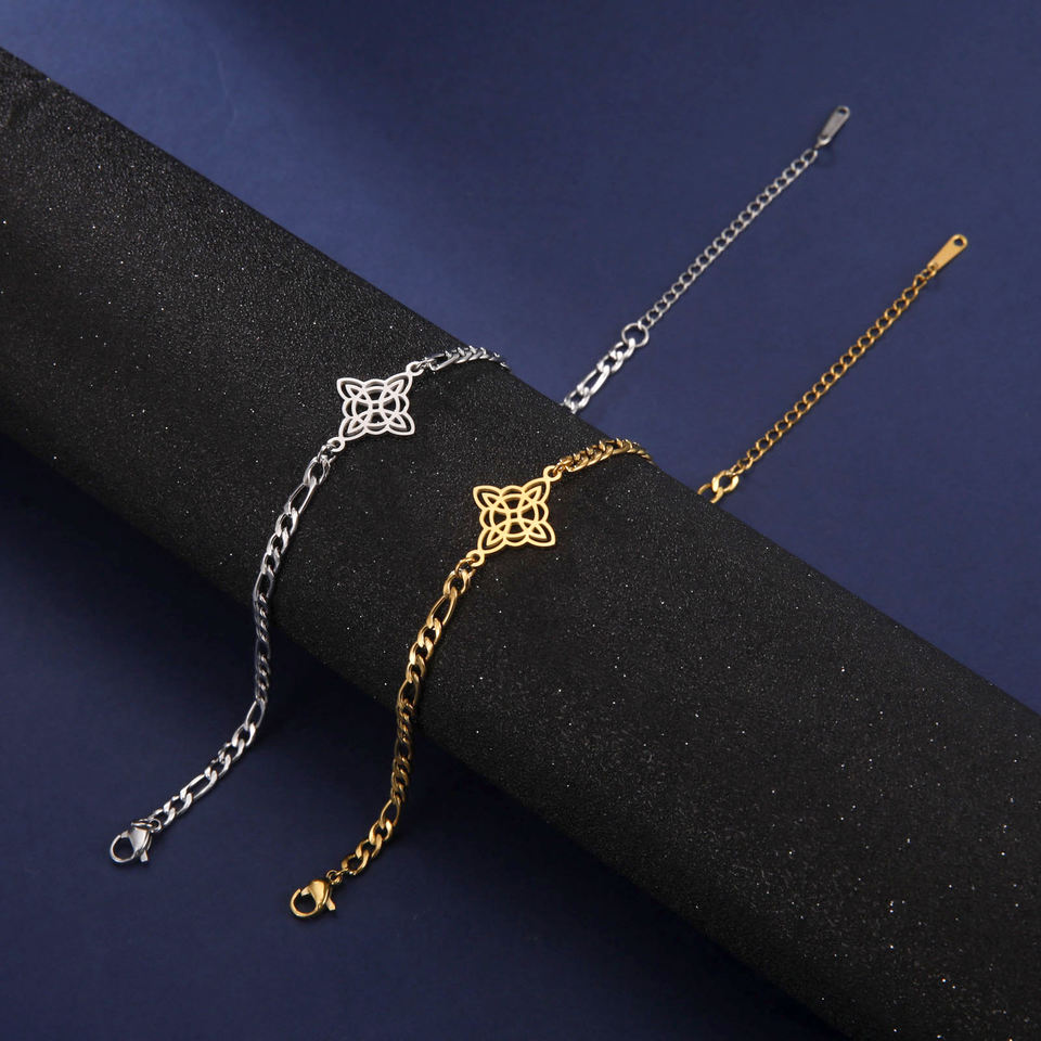 Myshape Witchcraft Witch Knot Charm Bracelet for Women Men Stainless Steel Figaro Chain Bracelets Amulet Paganism Jewelry Gift