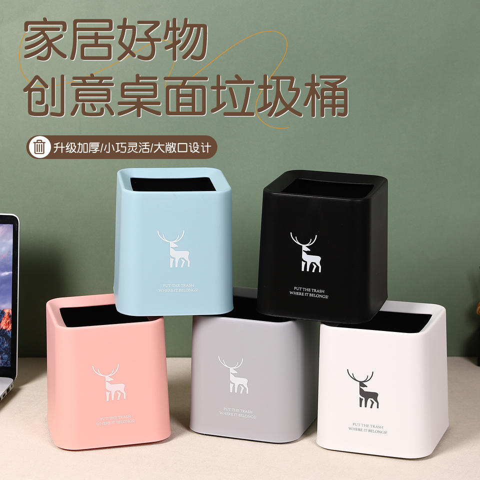 ถังขยะตั้งโต๊ะ Mystic Arts วัสดุ PP ไม่มีฝาปิด สำหรับสำนักงาน/ห้องอ่านหนังสือ ความจุขนาดใหญ่ ดีไซน์ทรงสี่เหลี่ยม