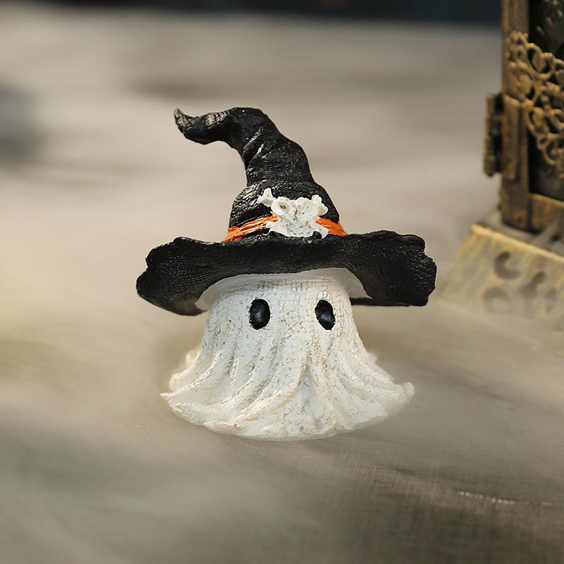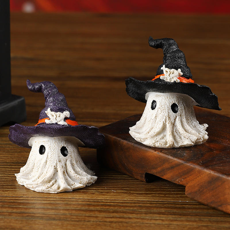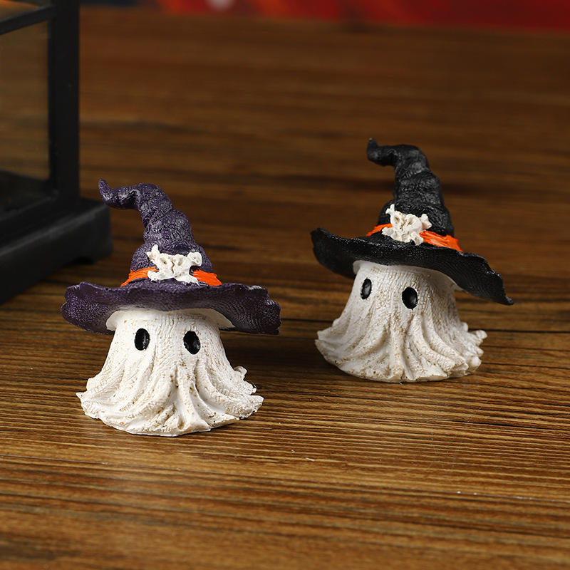 หมวกเวทมนตร์ศิลปะลึกลับ ของตกแต่งเรซิ่นรูปผี สีม่วงดำ ของตกแต่งฮาโลวีน อุปกรณ์ประกอบปาร์ตี้ น่ารัก สร้างบรรยากาศหลอนๆ
