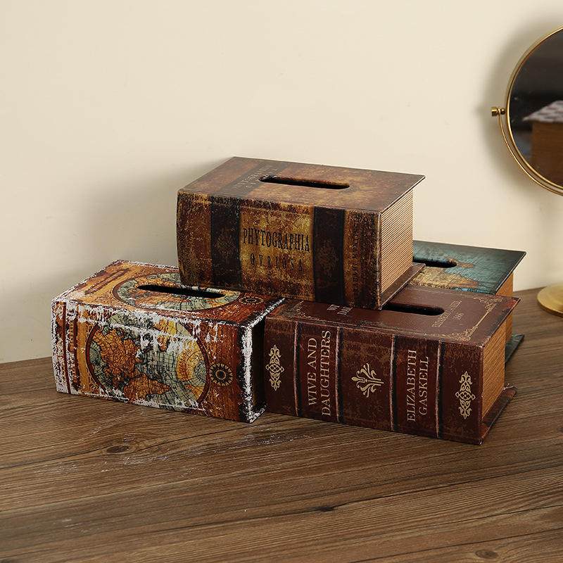 กล่องใส่กระดาษทิชชูไม้ลายศิลปะลึกลับ รุ่นหนัง PU แบบหนังสือ สำหรับตกแต่งบ้านและสำนักงาน รุ่น 4002A