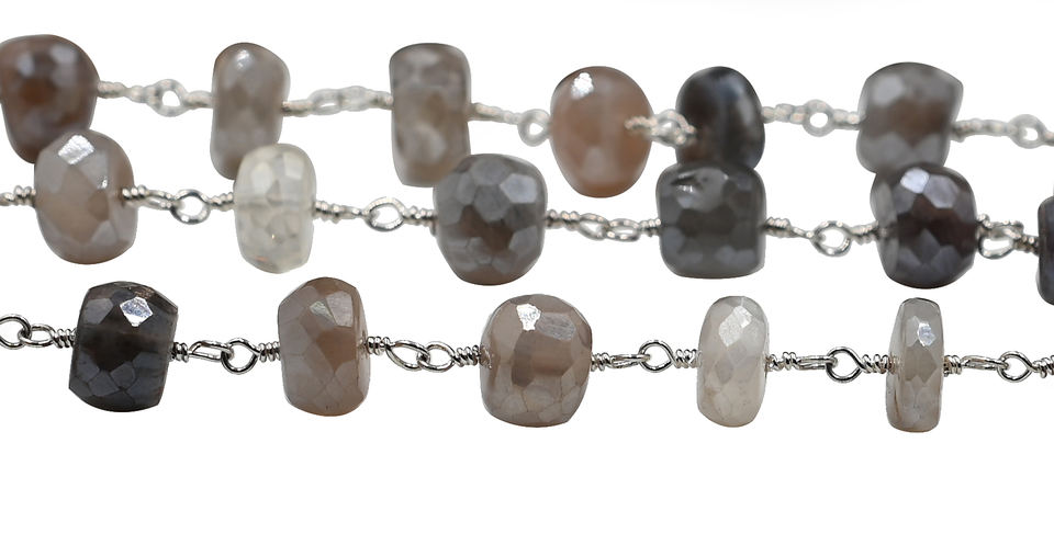 Product Name::Mystic Moonstone Brass Silver Plated Rosary Wire Wrapped Chain