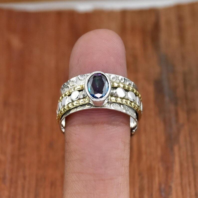 แหวนสปินเนอร์บุษราคัมลึกลับทำจากวัสดุเงินวงแหวนของขวัญสำหรับผู้หญิง
