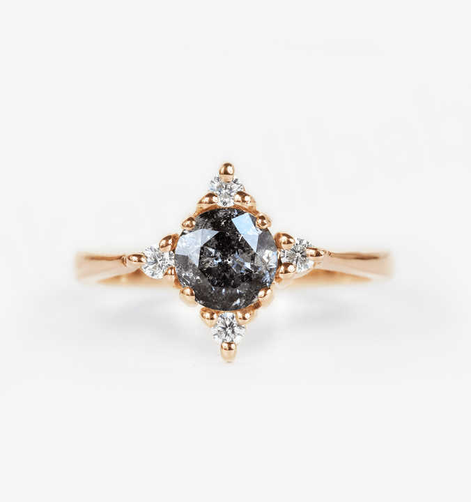 แหวนหมั้นเพชรเกลือและพริกไทยชุบโรเดียมสีโรสโกลด์สไตล์วินเทจสุดหรู สำหรับวันครบรอบแต่งงานหรืองานเลี้ยง