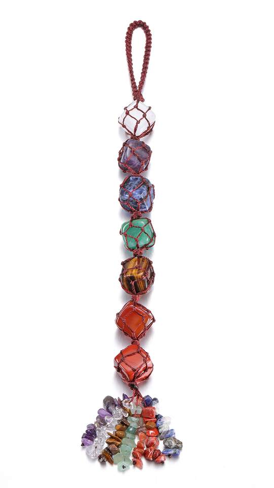 หินจักระ 7 ชนิด แบบกลิ้ง สำหรับแขวนในรถ ทำด้วยมือในอินเดีย พร้อมรูปปั้นเสริมฮวงจุ้ยเพื่อการป้องกันและตกแต่งสำหรับการเดินทาง