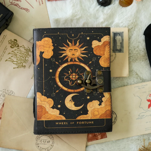 วารสารหนังดวงอาทิตย์และดวงจันทร์ลึกลับ wicca พิธีกรรมคาถาหนังสือเงาทำด้วยมือ Grimoire