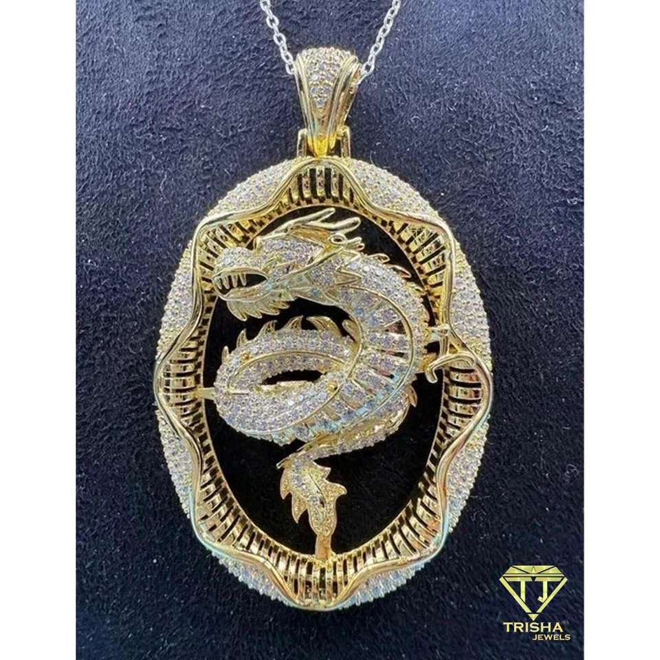 จี้มังกรในตำนาน เงินแท้ 925 ชุบทอง ประดับโมอิสซาไนต์ สไตล์ฮิปฮอป รับรองโดย GIA ของขวัญสำหรับทุกเพศ