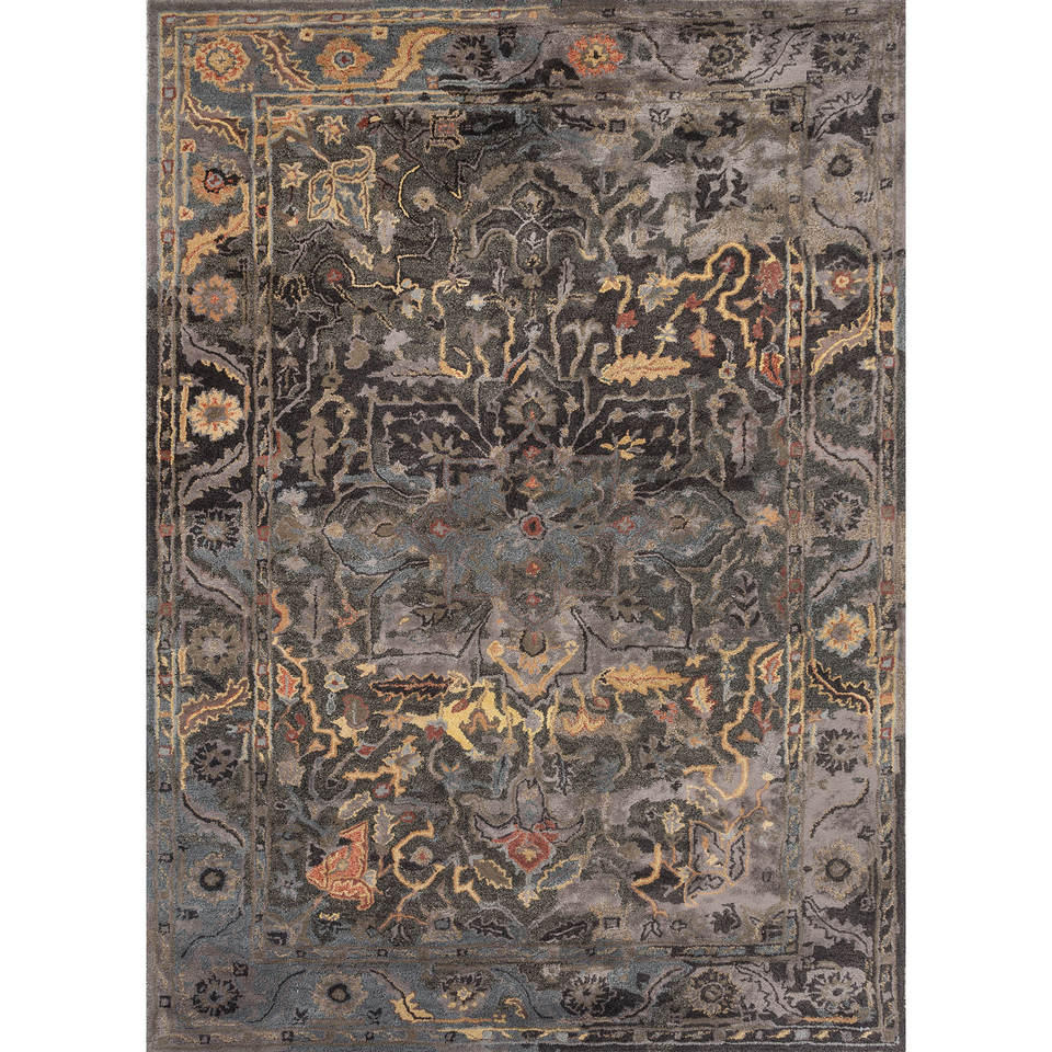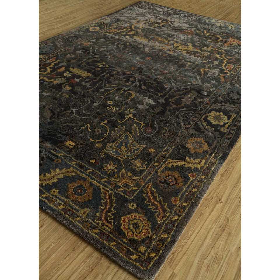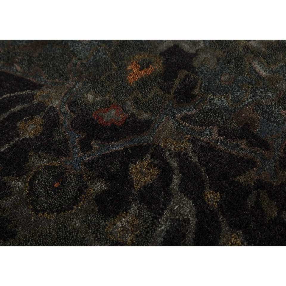 พรมไหมพรมถักมือ Mythos สีเทาและดำ ลายเหรียญ ทอแบบเรียบและปอกระเจา สำหรับใช้ในบ้าน-Taq-622