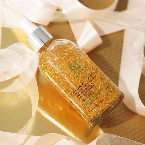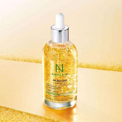 แอมพูลทองคำ 24K ขนาด 100 มล. OBM สำหรับใช้ที่บ้าน ช่วยให้ผิวขาวกระจ่างใส ชุ่มชื้น กระชับผิว ด้วยสารสกัดอาร์บูตินและกลีเซอรีน อายุการเก็บรักษา 36 เดือน