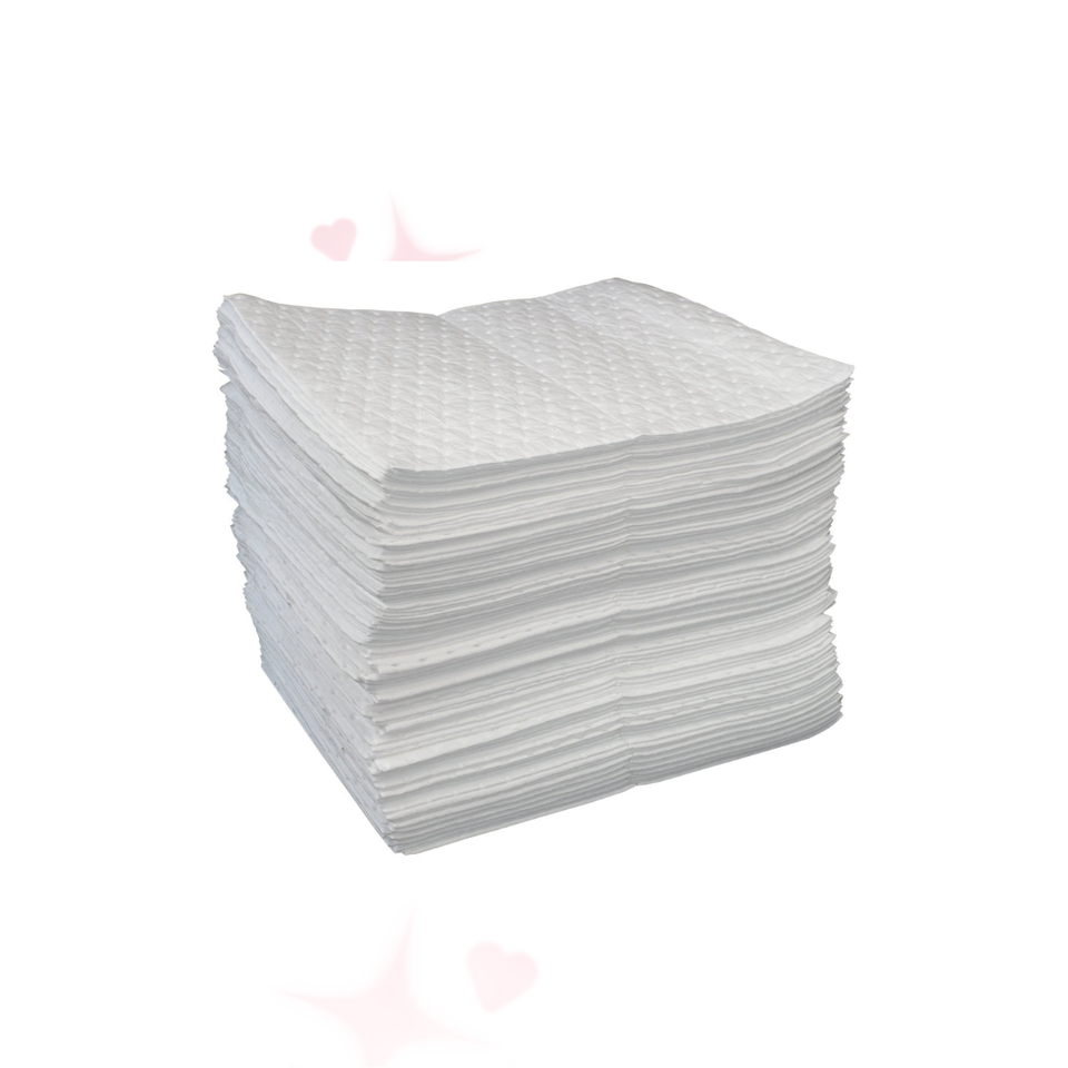 แผ่นดูดซับน้ำมัน N-FIBER P45 ความจุสูง 1.6 ลิตร สำหรับควบคุมการรั่วไหลของน้ำมันในอุตสาหกรรม แบบกันน้ำ รักษาสิ่งแวดล้อม บรรจุ 100 แผ่น/กล่อง