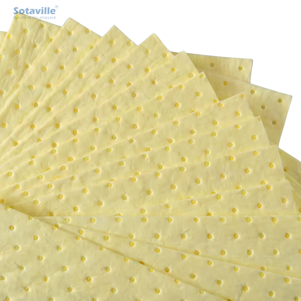 แผ่นดูดซับน้ำมัน N-FIBER P45 ความจุสูง 1.6 ลิตร สำหรับควบคุมการรั่วไหลของน้ำมันในอุตสาหกรรม ผลิตจากโพลีโพรพิลีนแบบไม่ดูดซับน้ำ บรรจุ 100 แผ่น/กล่อง