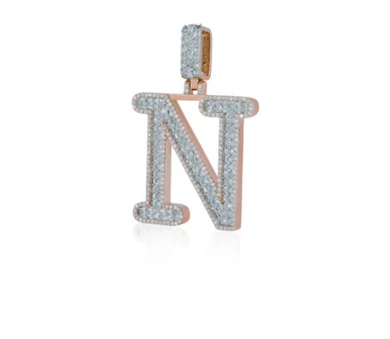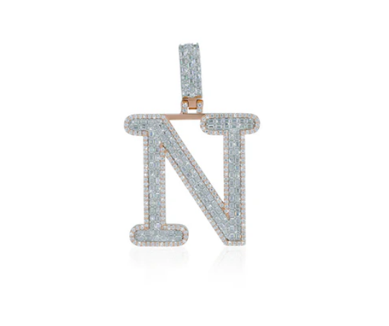 จี้เพชรโมอิสซาไนต์ทรงเจ้าหญิงตัวอักษร N ชุบทอง สไตล์ฮิปฮอป สำหรับวันครบรอบและงานแต่งงาน