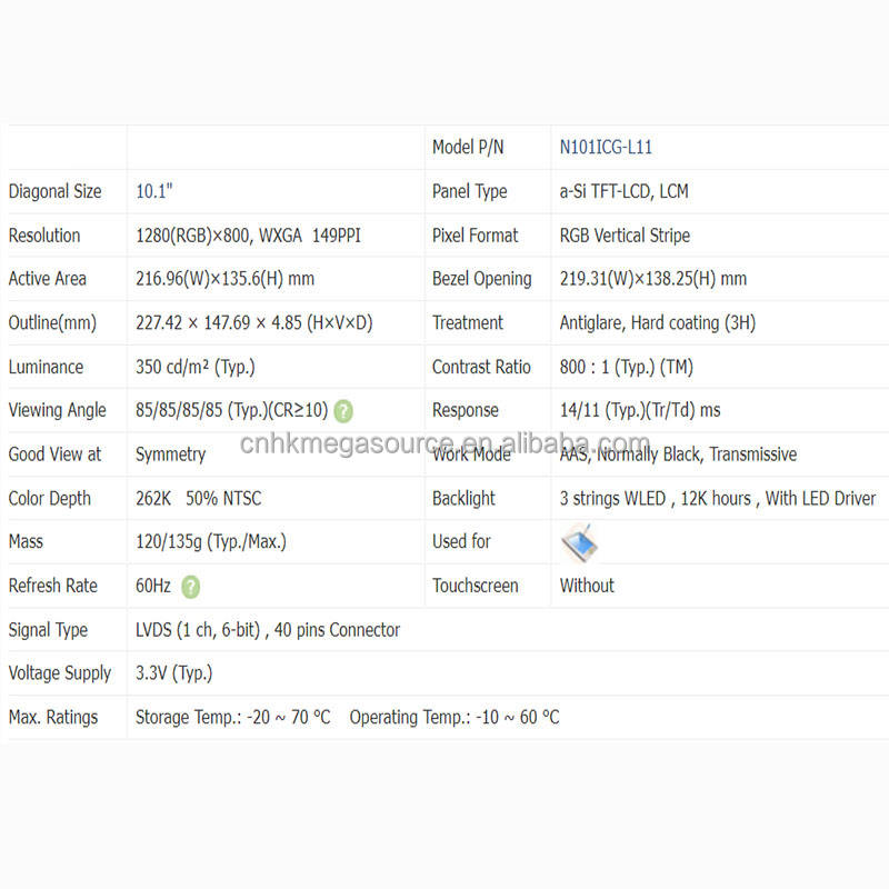 N101ICG-L11 Innolux LCD โมดูลผลึกเหลว10.1นิ้วแผงแอลซีดีโมดูล1280*800 LVDS LCD