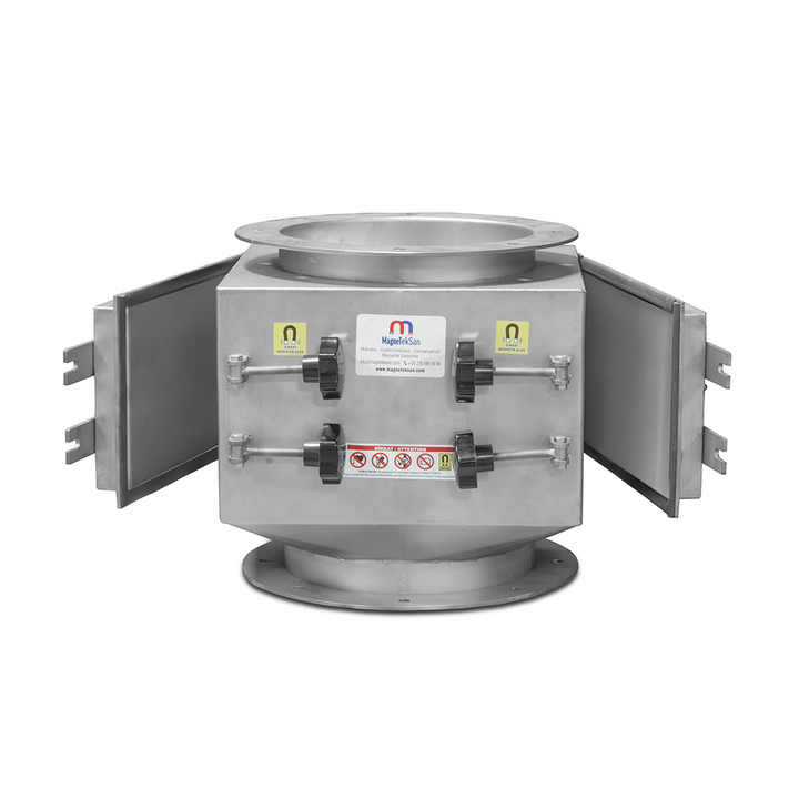 ตัวแยกแม่เหล็กถาวรนีโอไดเมียม N35 แบบสองแผ่น ตัวกรองแม่เหล็กผงสแตนเลสสำหรับซีเมนต์ แป้ง และโซดา