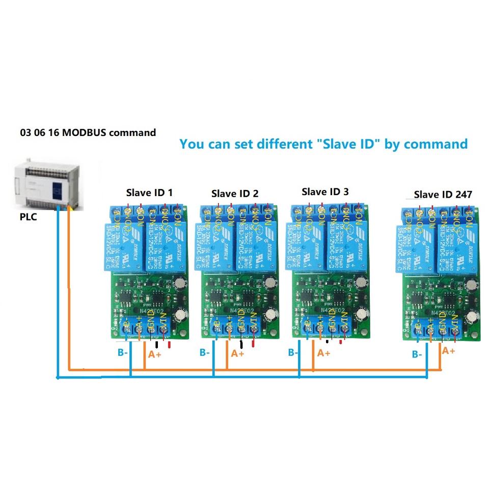 N428E02บอร์ดรีเลย์ RS485 2Ch ขนาดเล็ก DC 12V โมดูลสวิตช์ RTU Modbus RTU สำหรับ A305ขยายดิจิตอล PLC