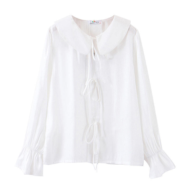 เสื้อผู้หญิงสีขาว รุ่น N7175 พร้อมโบว์ผูกด้านหน้า แขนพอง ผ้าฝ้าย สีพื้น ใส่ได้ทุกวัน ไซส์พลัส สำหรับผู้หญิง
