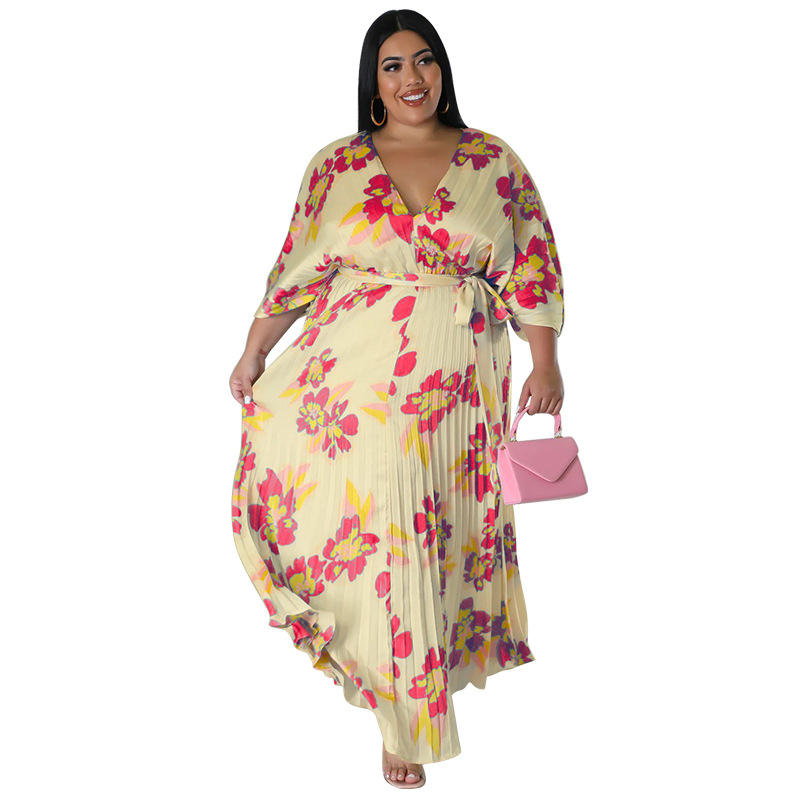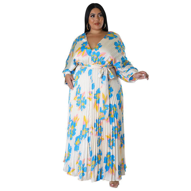 N7923 Europe and America Plus Size Women's Clothing Autumn Winter Sweet Style Plump Girls Loose Pleated Long Dress