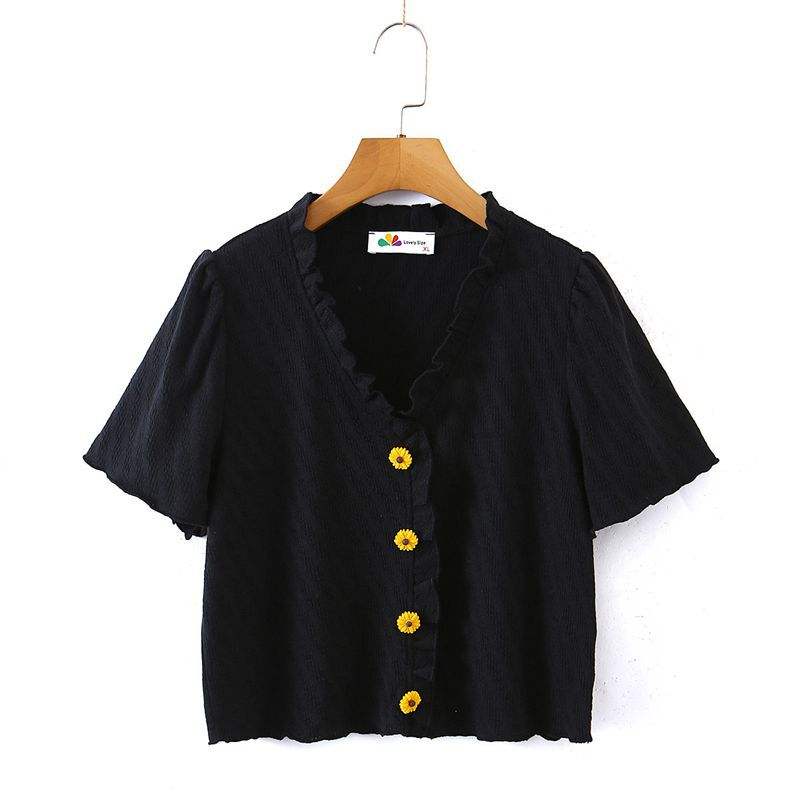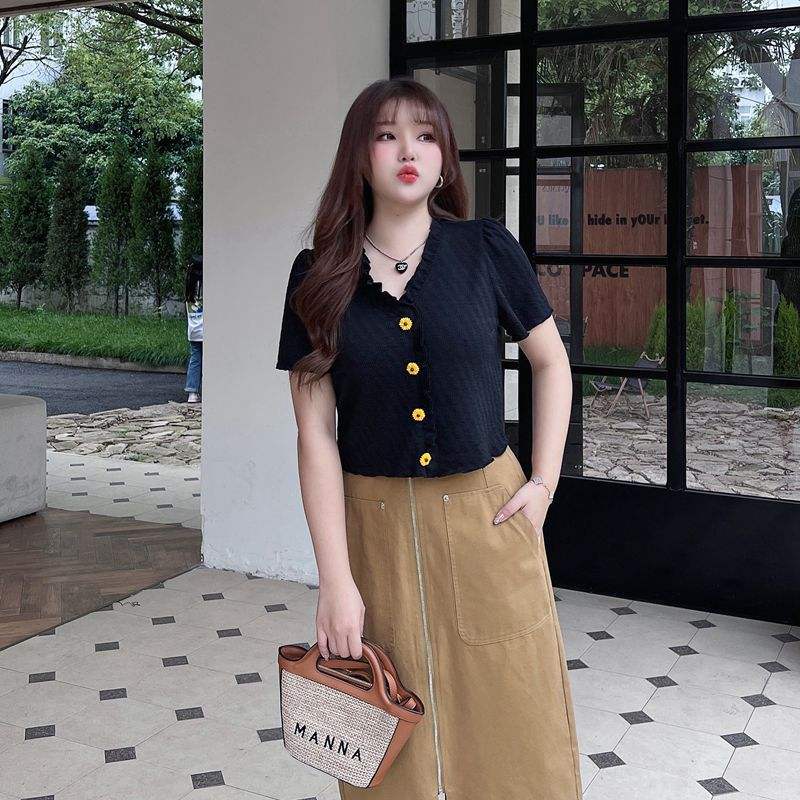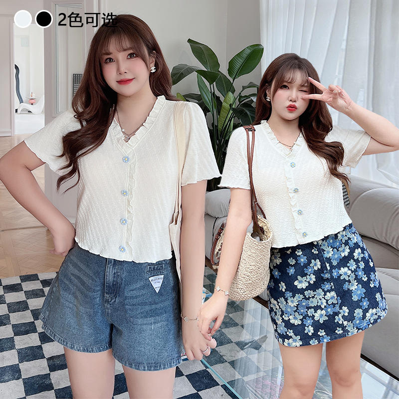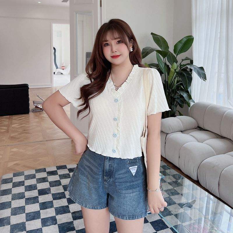 เสื้อครอปแขนสั้นคอวีสำหรับผู้หญิงไซส์ใหญ่ รุ่น N8262 สีพื้น ผ้าโพลีเอสเตอร์ เสื้อแฟชั่นสำหรับใส่ทุกวัน