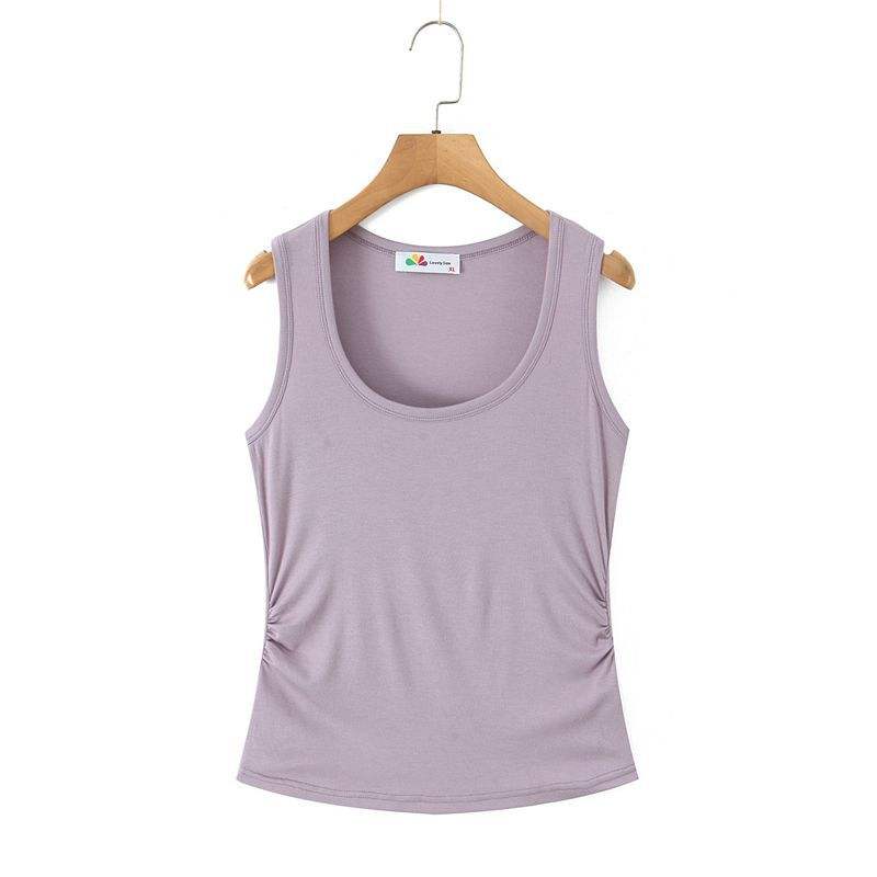เสื้อกล้ามโมดอลสำหรับผู้หญิงไซส์ใหญ่ รุ่น N9270 คอกลม จับจีบด้านข้าง ทรงหลวม สีพื้น ผ้าเจอร์ซีย์ระบายอากาศได้ดี