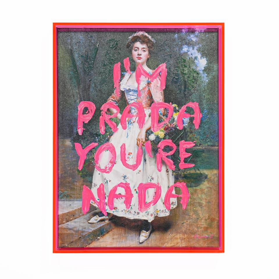 ภาพวาดบนผ้าใบ NADA พร้อมกรอบอะคริลิคสีชมพู ขนาด 30x40 ซม. หนา 5 ซม.