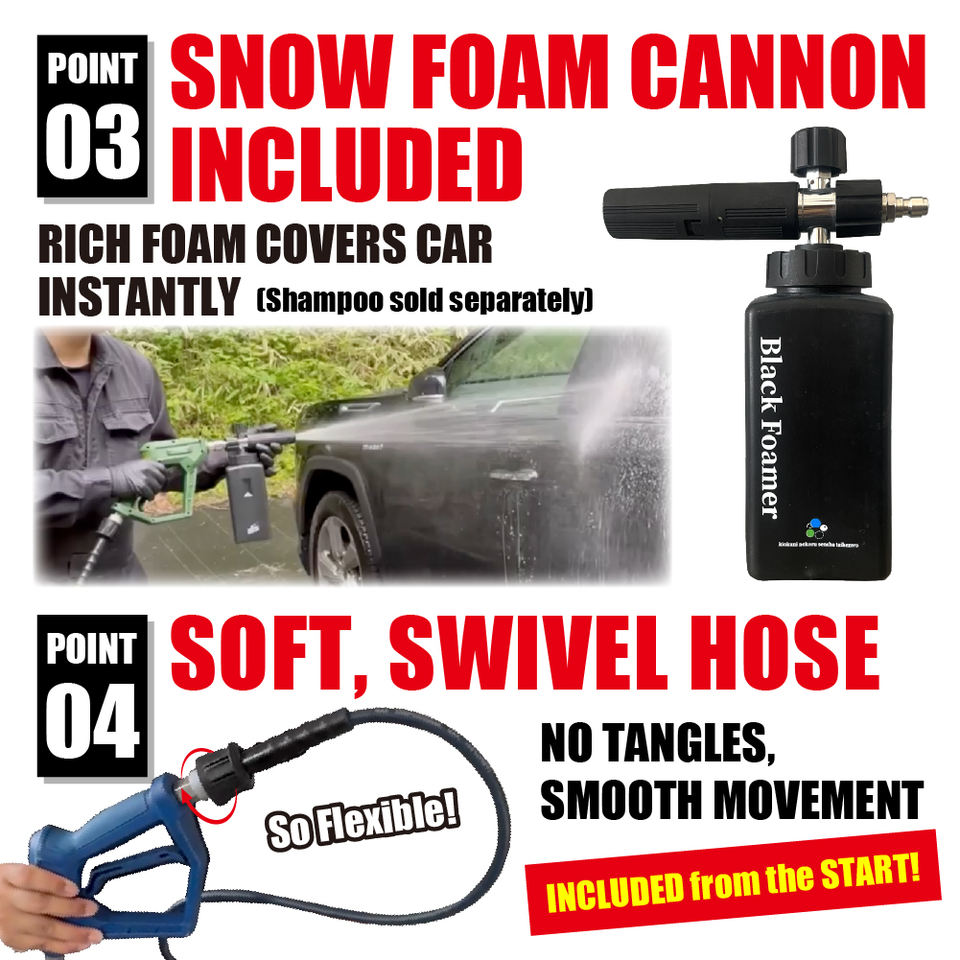 เครื่องฉีดน้ำแรงดันสูงแบบพกพา 1100 วัตต์ สายสีดำยาว 10 เมตร พร้อมปืนฉีดน้ำ เครื่องล้างรถแบบพกพา