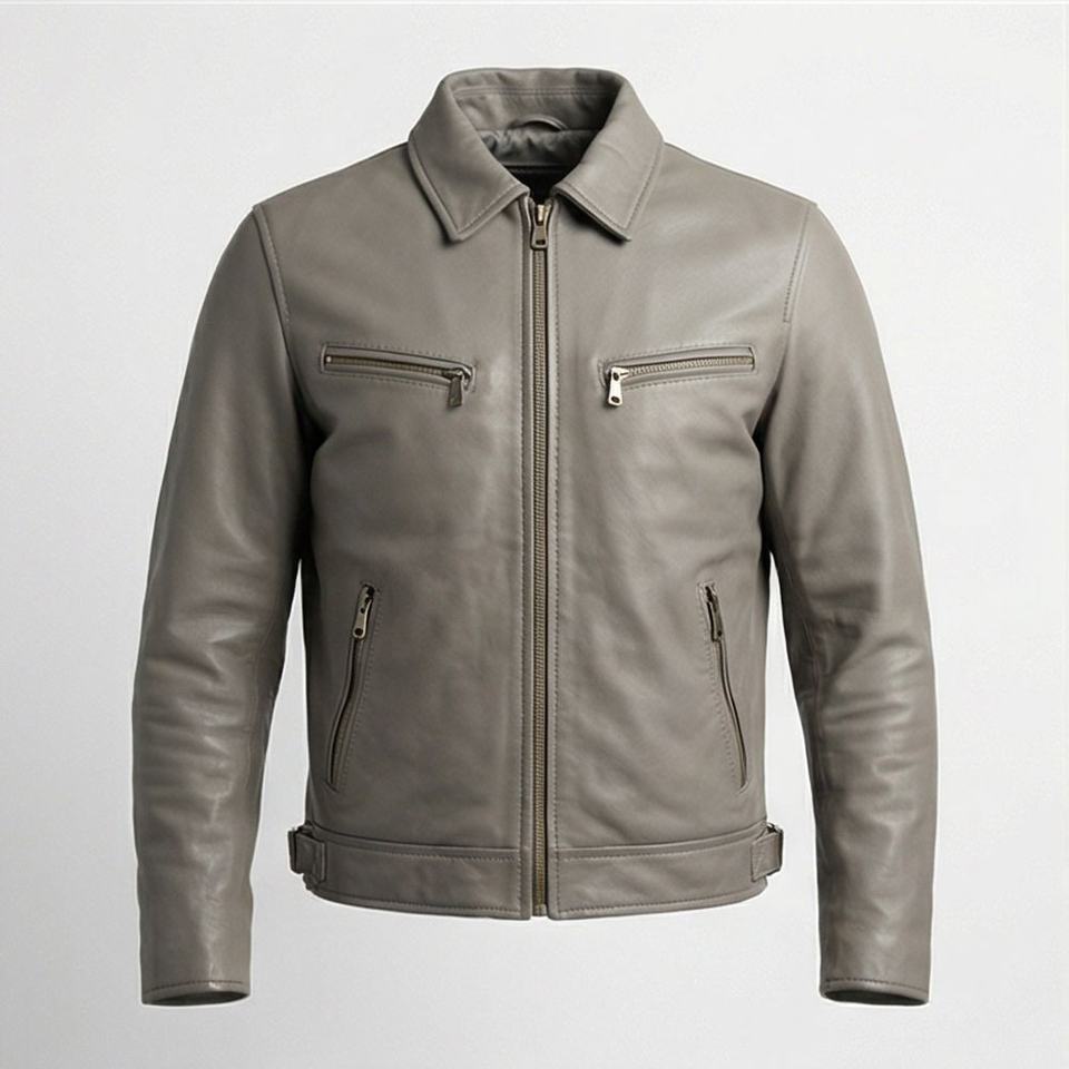 เสื้อแจ็คเก็ตหนังแท้ผู้ชาย NAI-0470A สไตล์ไบค์เกอร์ แฟชั่นลำลอง ไซส์ XL ปิดซิป เหมาะสำหรับฤดูร้อน สินค้าขายส่ง สีตามสั่ง