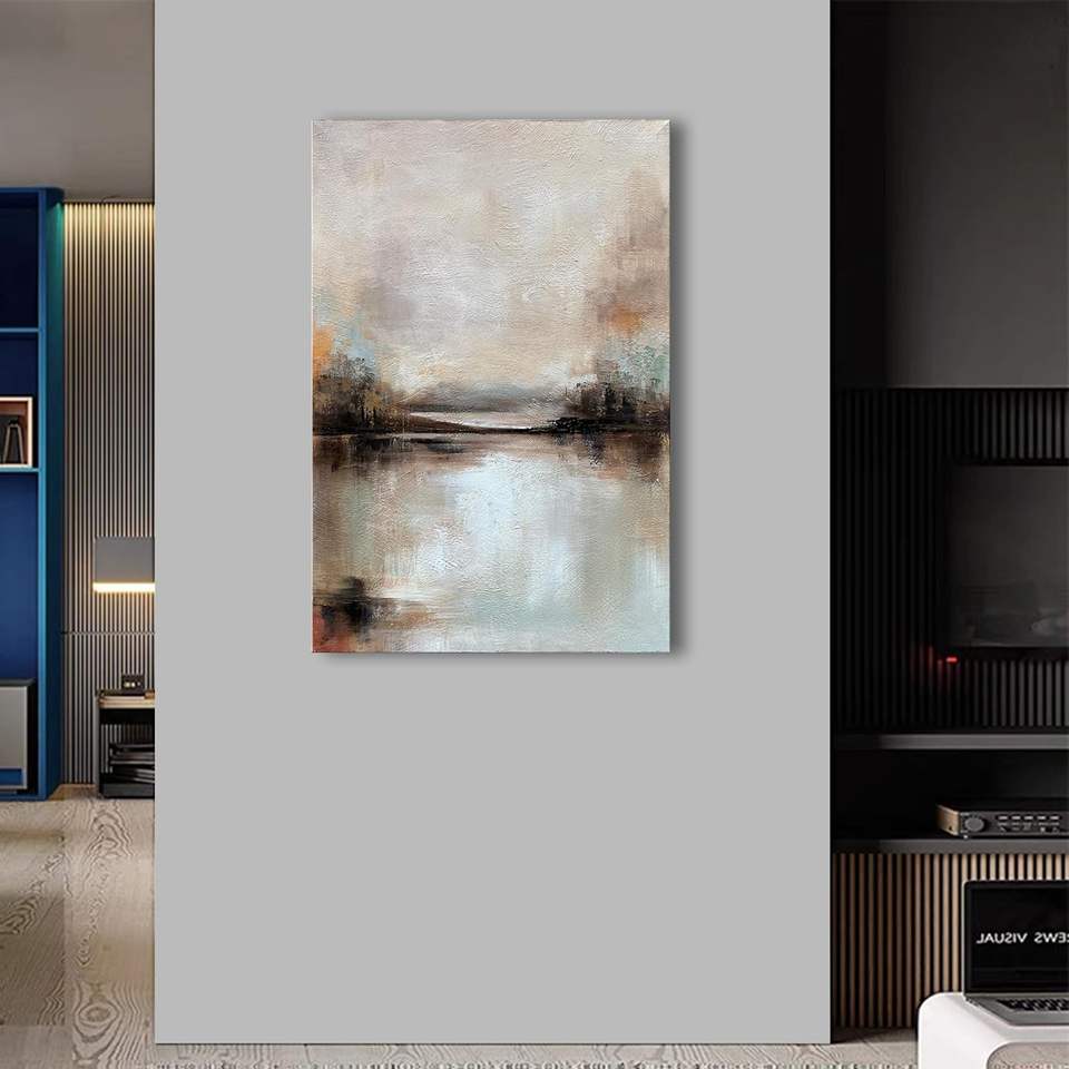 Nankai 24X36นิ้วการตกแต่งผนังพื้นผิวนามธรรมที่ทันสมัยภาพวาดมือที่มีภูมิทัศน์ทะเลสาบที่ราบสูงสำหรับบ้าน