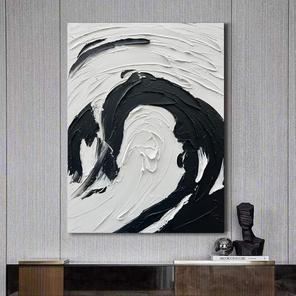ภาพวาดอะคริลิกแฮนด์เมดสไตล์โมเดิร์นนามธรรมของ NANKAI บนผืนผ้าใบ สำหรับใช้ภายในอาคาร สีดำขาว