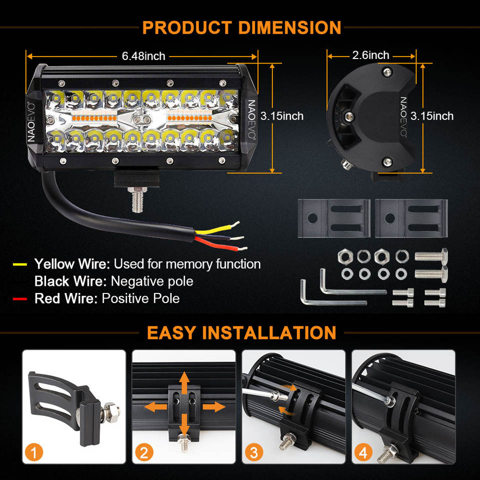 NAO ไฟ Led 4 "7" 42 "นิ้วสีเหลืองอำพัน,ไฟ Led สำหรับรถบรรทุกที่ทันสมัย4X4ออฟโรด12V 24V 60W 72W 120W ไฟเทรลเลอร์ทางลาดรถออฟโรด Led บาร์