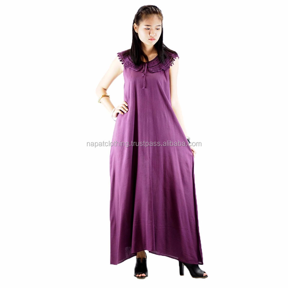 NAPAT เดรสสตรีแขนสั้น,เดรสผ้าฝ้ายความยาวลากพื้น