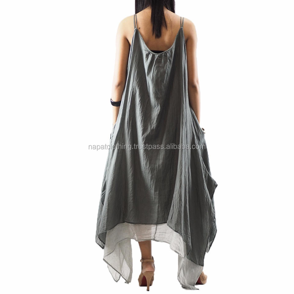NAPAT ชุดเดรสยาวทรงแบ็กกี้สำหรับผู้หญิง,ชุดกระโปรงแขนกุดสองชั้นเสื้อผ้าลำลองด้านล่าง