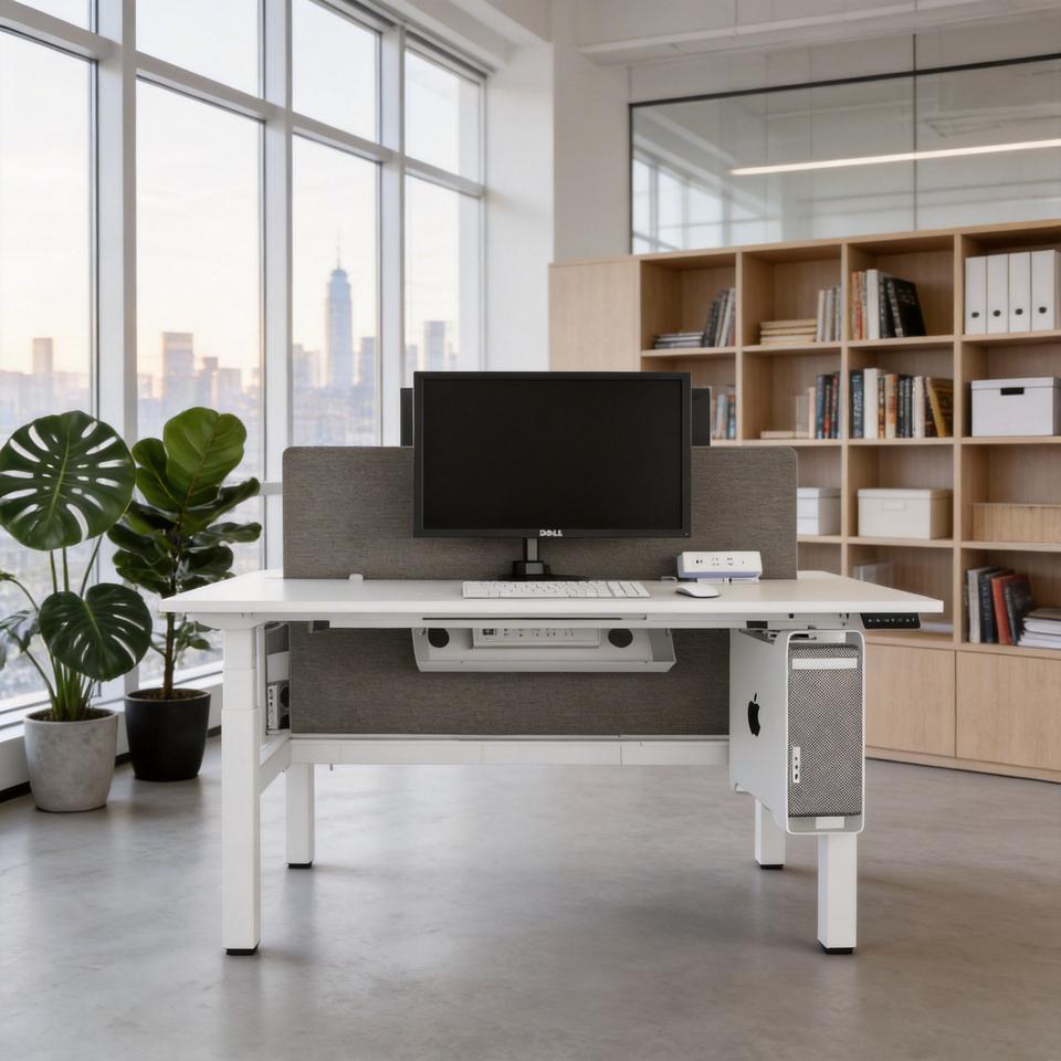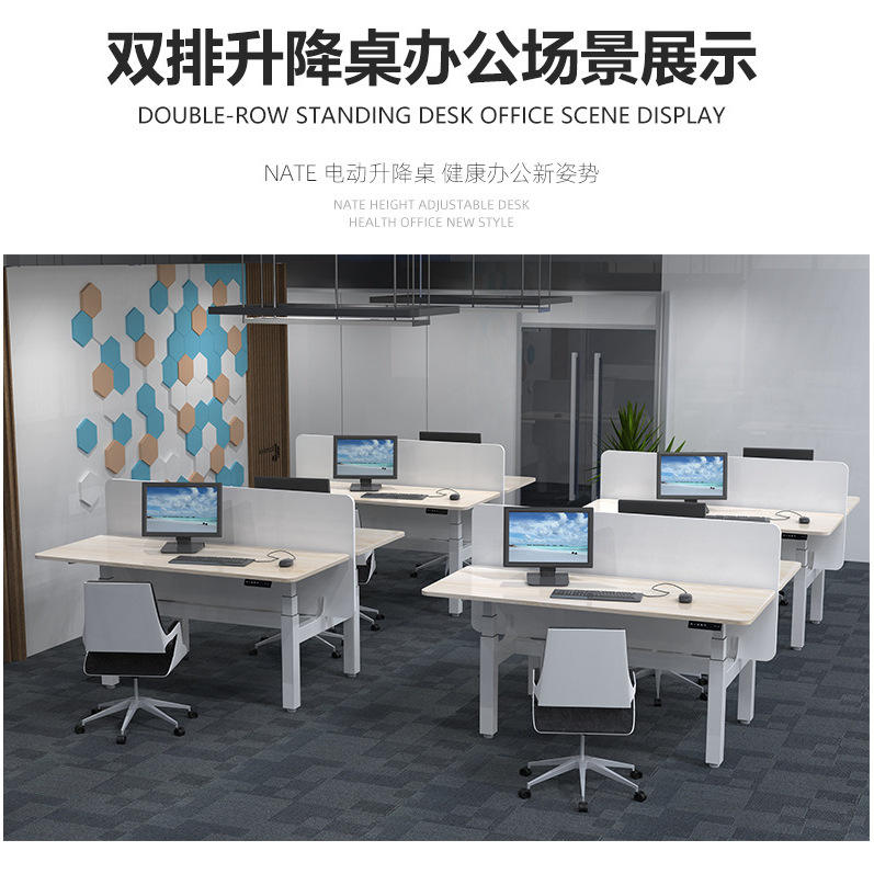 โต๊ะทำงานปรับระดับความสูงได้ NATE สำหรับสองคน โต๊ะยืนไฟฟ้าสี่มอเตอร์ พร้อมขาปรับระดับได้ สำหรับใช้ในบ้านหรือสำนักงาน