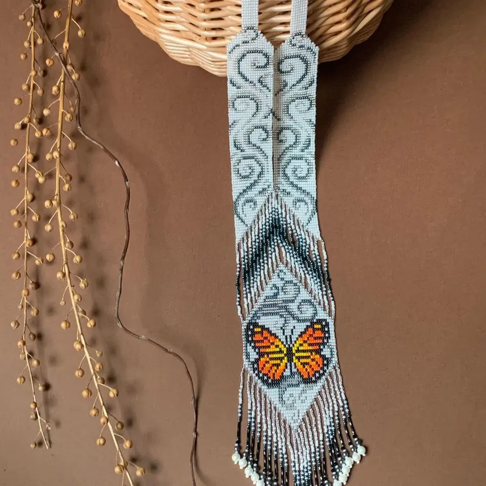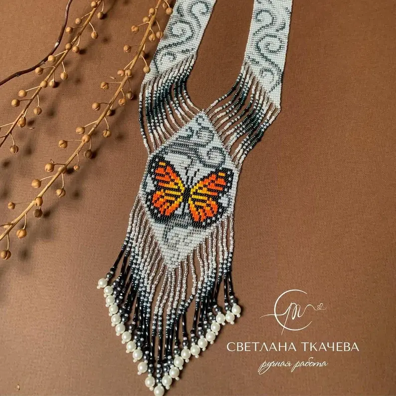 สร้อยคอประดับลูกปัดลายผีเสื้อแบบดั้งเดิม, ประดับด้วยลูกปัด | เชื้อชาติ | ชนเผ่า | สร้อยคอสีขาวและสีดำ | ไม่เหมือนใคร | สร้อยคอผู้หญิงแอฟริกันพร้อมต่างหู ของขวัญ