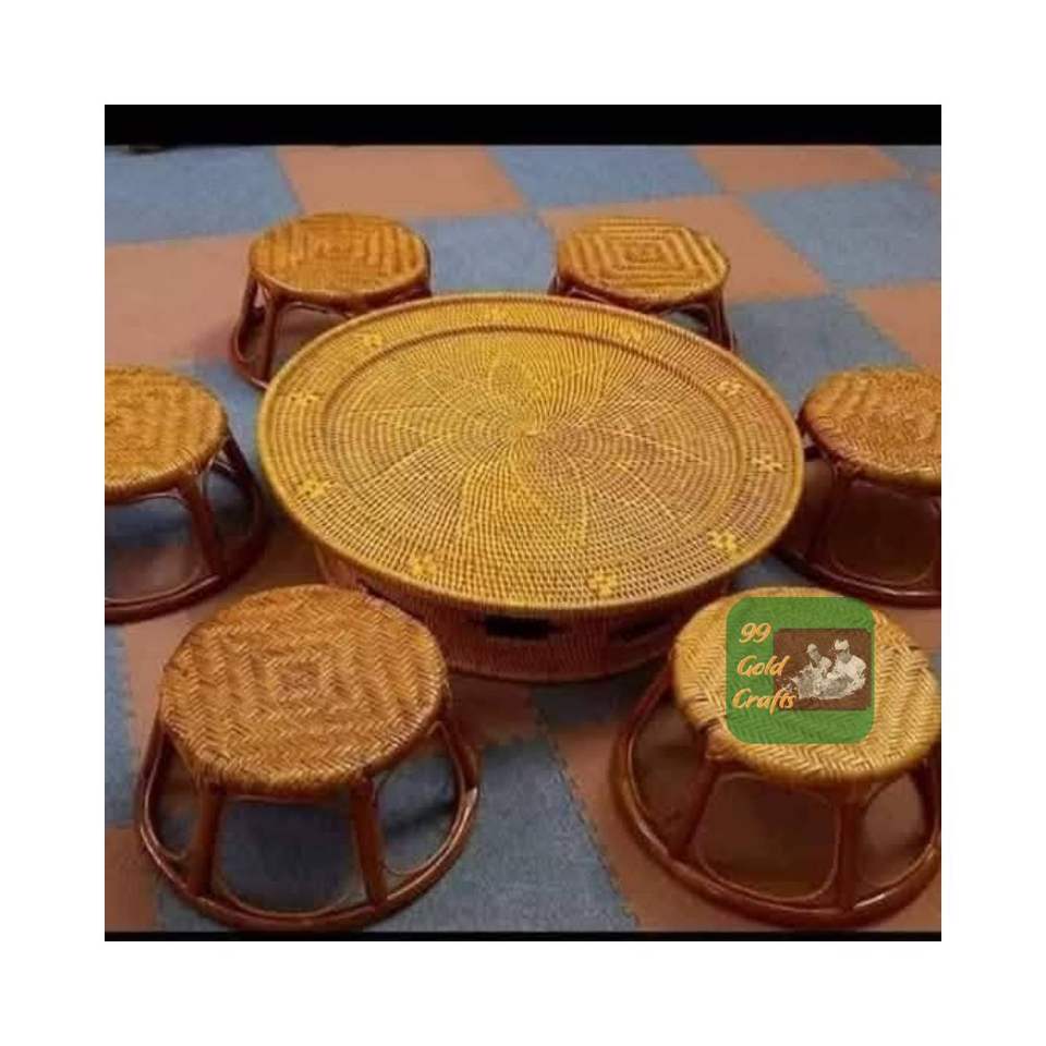 โต๊ะไม้ไผ่ธรรมชาติสำหรับห้องนั่งเล่นโต๊ะไม้ไผ่พร้อมถาดหวาย
