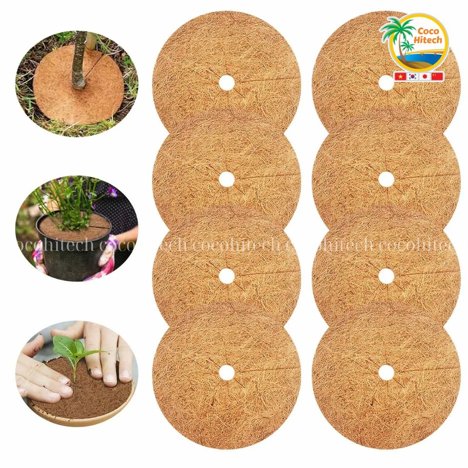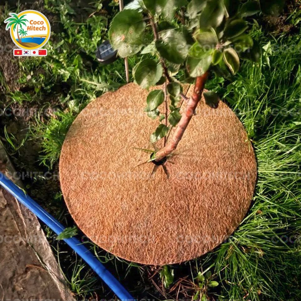 แผ่นคลุมด้วยหญ้ามะพร้าวธรรมชาติติดตั้งบนฟาร์มเพื่อป้องกันต้นไม้