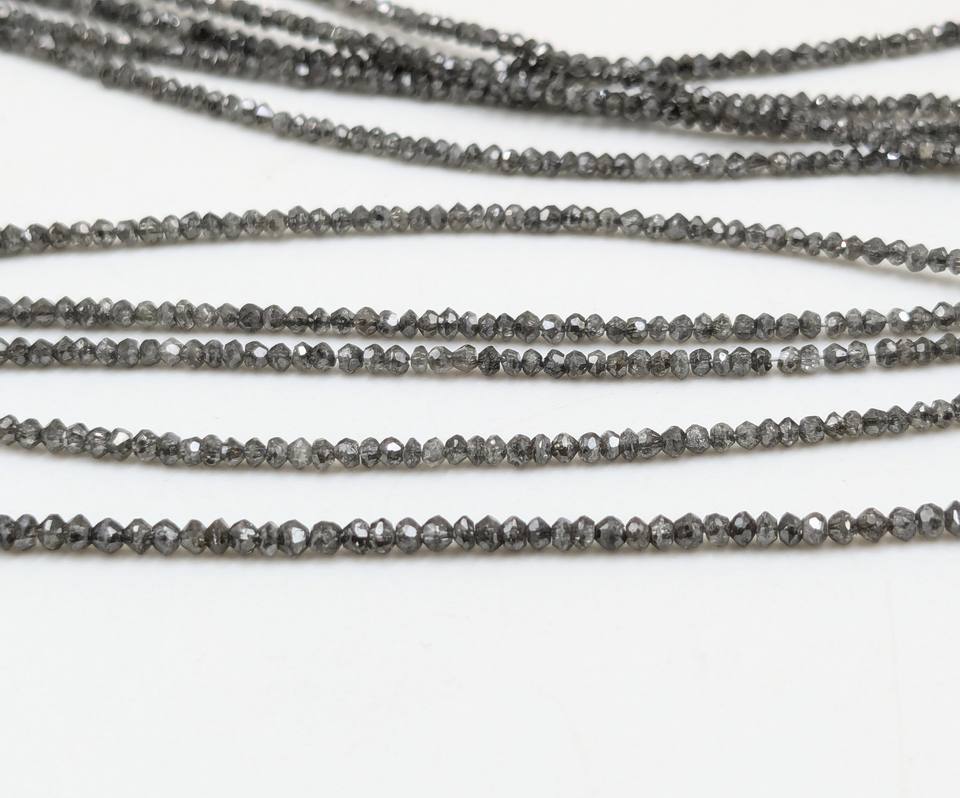 ลูกปัดเพชรธรรมชาติสีเทาเข้ม 3 มม. เจียระไนเหลี่ยมเพชรพลอย รับรองคุณภาพ ขายส่ง อุปกรณ์ทำเครื่องประดับ