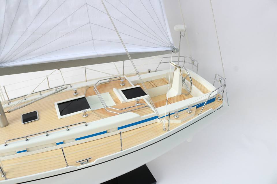 เรือใบตกแต่งทำมือจากไม้ NAUTOR SWAN 48 ทาสีด้วยมือ รูปทรงไม่สมมาตร สำหรับตกแต่งบนโต๊ะ ของตกแต่งบ้าน เวียดนาม