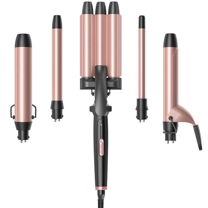 ชุดเครื่องหนีบผมเซรามิกแบบเปลี่ยนได้5 in 1, ชุดเหล็กไฟฟ้าทำความร้อนเร็วสำหรับใช้ในบ้านหรือโรงแรม