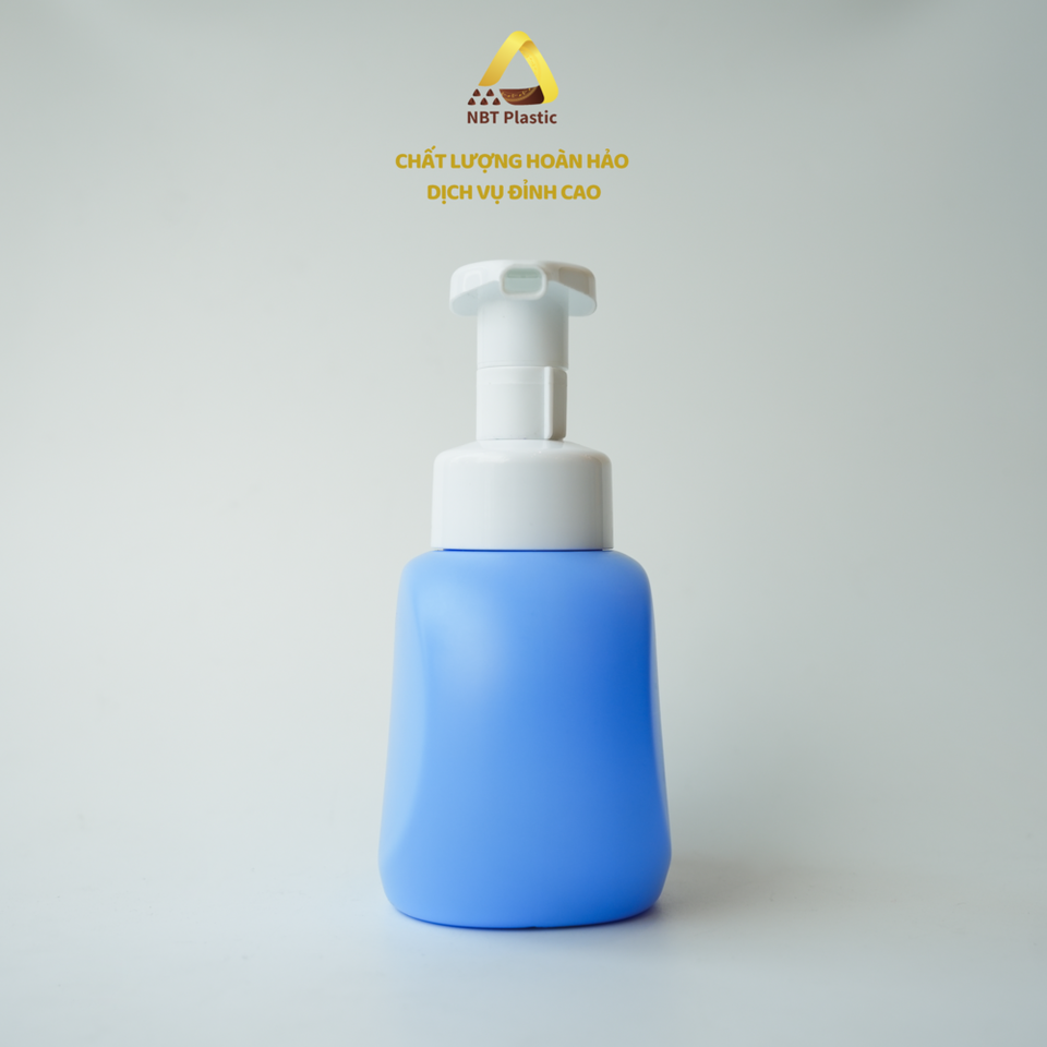 ขวดพลาสติก HDPE สีขาวสีฟ้าสำหรับใส่สบู่ล้างมือขนาด300มล. พร้อมปั๊มโฟมขวดเครื่องสำอาง