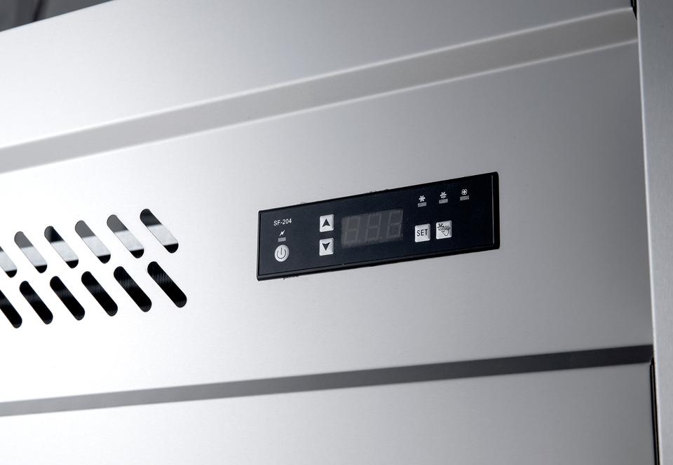 ตู้แช่แข็งสแตนเลสขนาดใหญ่ NE-841 ระบบทำความเย็นด้วยอากาศ พร้อมล้อเลื่อน ประตูคู่ ระบบป้องกันน้ำแข็งเกาะ ไฟ LED สำหรับเชิงพาณิชย์