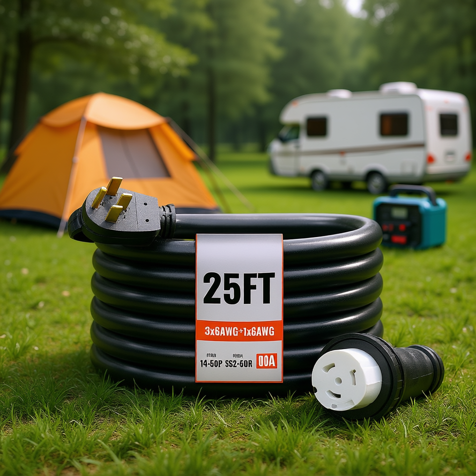 สายไฟเครื่องกำเนิดไฟฟ้า NEMA 14-50P SS2-50R 6AWG 50A ยาว 25 ฟุต พร้อมหัวต่อแบบ Twist Lock สำหรับใช้งานกลางแจ้ง