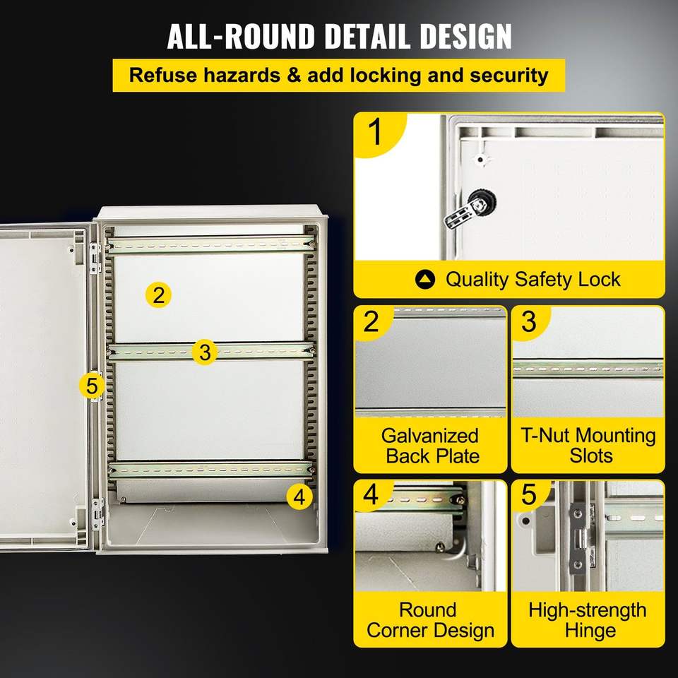กล่องไฟฟ้าไฟเบอร์กลาส4X Nema 24x16x9 '', ตู้เหล็ก IP66กันน้ำกันฝุ่นสำหรับการใช้งานกลางแจ้ง/ในร่ม60x40x23ซม.